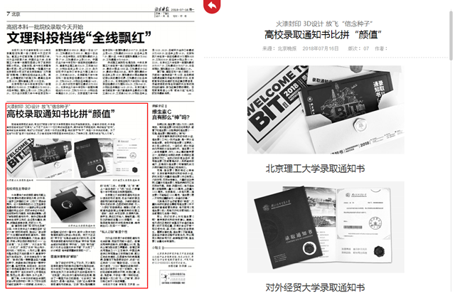 【北京晚报】印着独特北理工“密码”的录取通知书