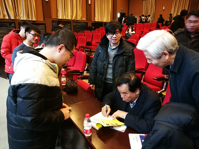 报告会结束后,与会师生纷纷上前请黄春平签名,黄春平也亲切地同师生合影留念。